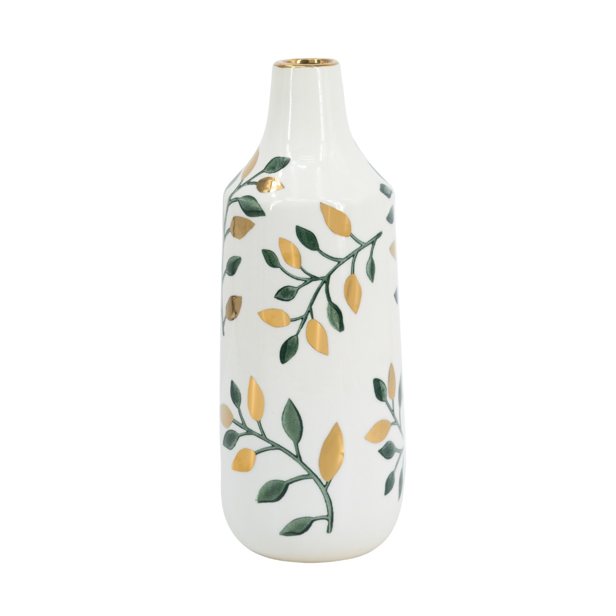 Artekko Anivia Διακοσμητικό Βάζο Δοχείο Κεραμικό Λευκό Χρυσό Πράσινο (12x12x31)cm