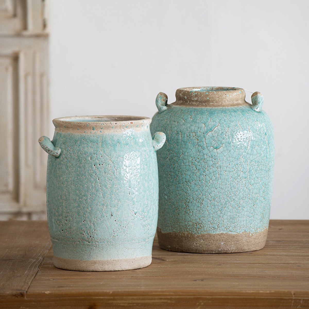 Artekko Candia Βάζο από Τερακότα Γαλάζιο Πατίνα (27.5x27.5x35.5)cm