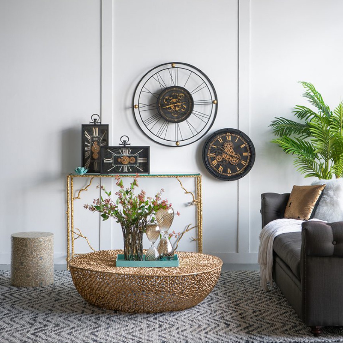 Artekko Clock Ρολόι Τοίχου Μέταλλο Γυαλί Μαύρο Χρυσό (50x50x9)cm