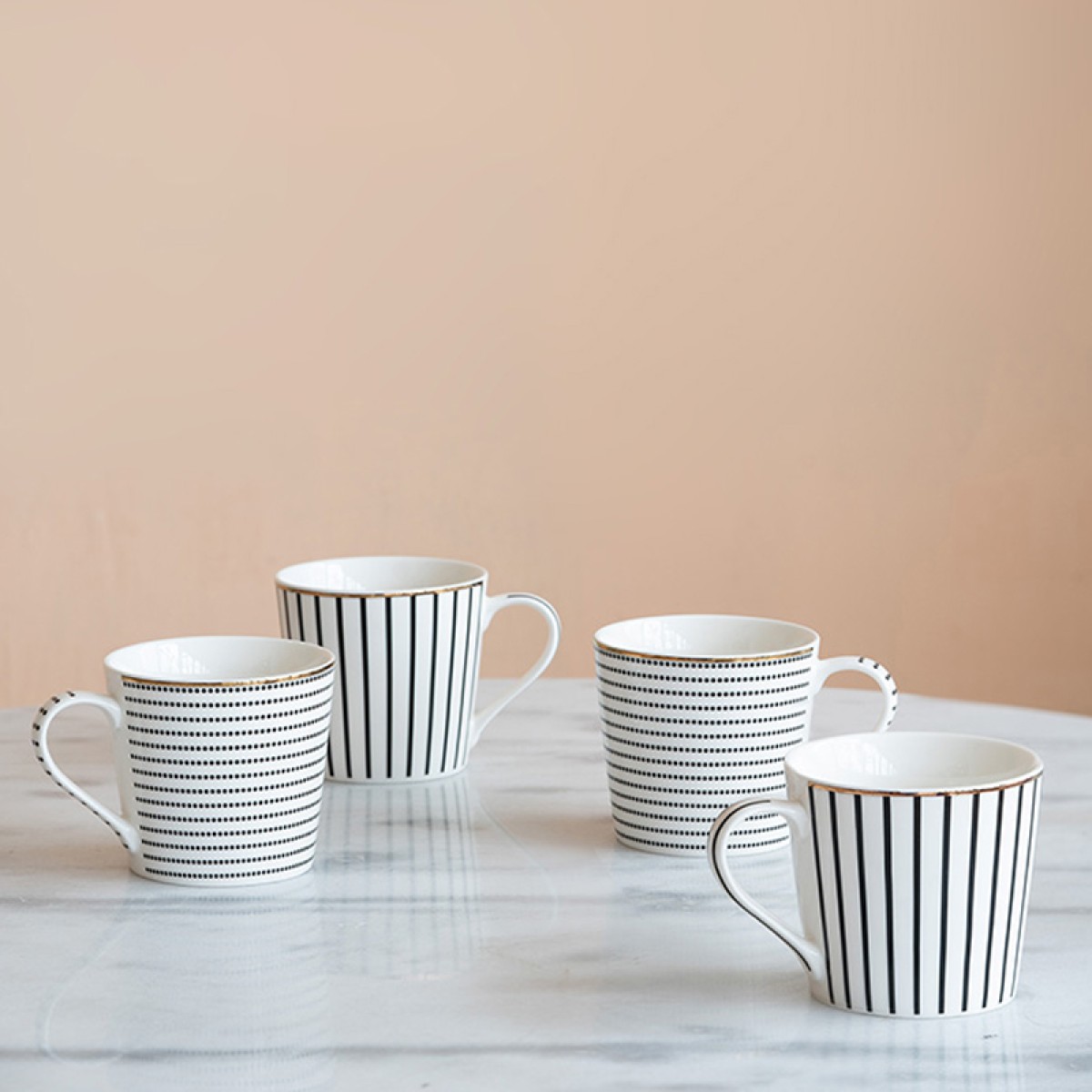 Artekko Iqorser Κούπες Bone China Πορσελάνη Λευκό/Μαύρο (10x13.5x9)cm Σετ/4