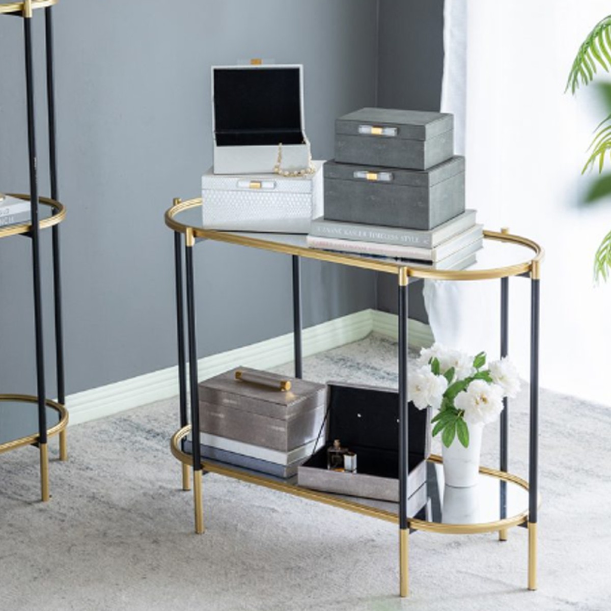 Artekko Lisa Κοσμηματοθήκη Κουτί Διακοσμητικό MDF Τεχνόδερμα Γκρι (27.5x23x13.5)cm Σετ/2
