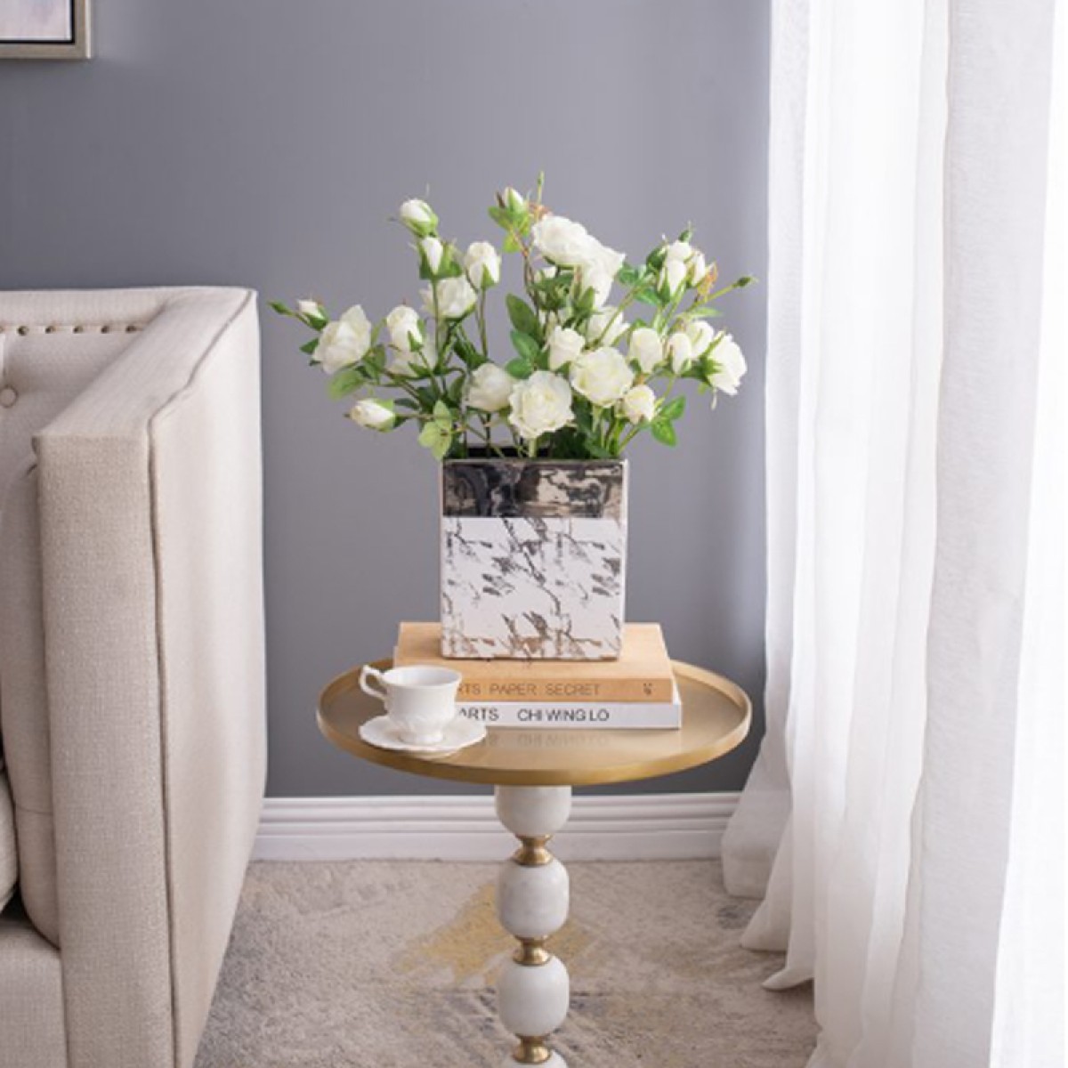 Artekko Marble Κεραμικό Βάζο Ασημί με Εφέ Μαρμάρου (17.5x9x19)cm