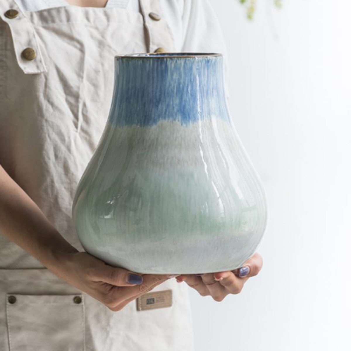 Artekko Silk Διακοσμητικό Βάζο Κεραμικό Μπεζ Μπλε (23x23x25.5)cm