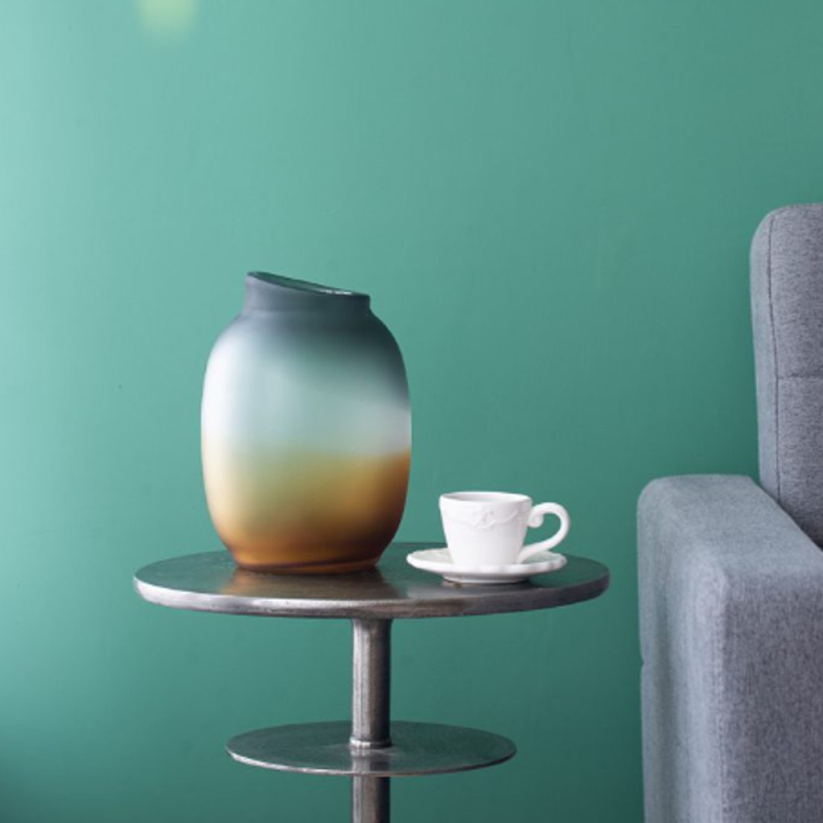 Artekko Sunset Διακοσμητικό Βάζο Χειροποίητο Γυαλί Μαύρο Πορτοκαλί (18x18x25)cm