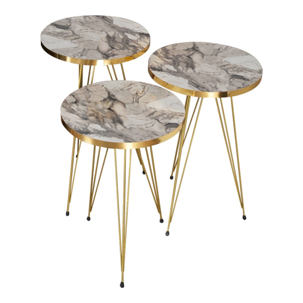 Marble Τραπέζι Βοηθητικό με Μάρμαρο Μέταλλο Λευκό Χρυσό..