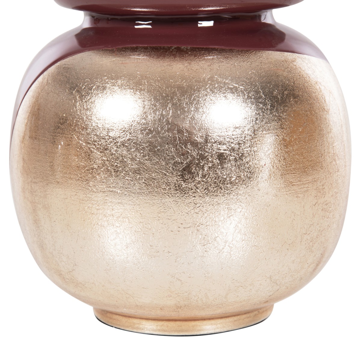 Το διακοσμητικό επιτραπέζιο βάζο LINGON είναι εξολοκλήρου μεταλλικό και αποτελείται από δύο μέρη. Την σχεδόν σφαιρική βάση και το βάζο με το μεγάλο στόμιο κολλημένο επάνω στην βάση. Το χρώμα του είναι ΚΕΡΑΣΙ με ΧΡΥΣΟ περιμετρικά στο στόμιο, ενώ η βάση είναι ΚΕΡΑΣΙ με ΧΡΥΣΟ περλέ χρώμα που αντανακλά το φως και δίνει ένα εντυπωσιακό και λαμπερό τελικό αποτέλεσμα. Αυτό το βάζο θα ομορφύνει κάθε χώρο είτε στο σπίτι είτε στον επαγγελματικό σας χώρο.