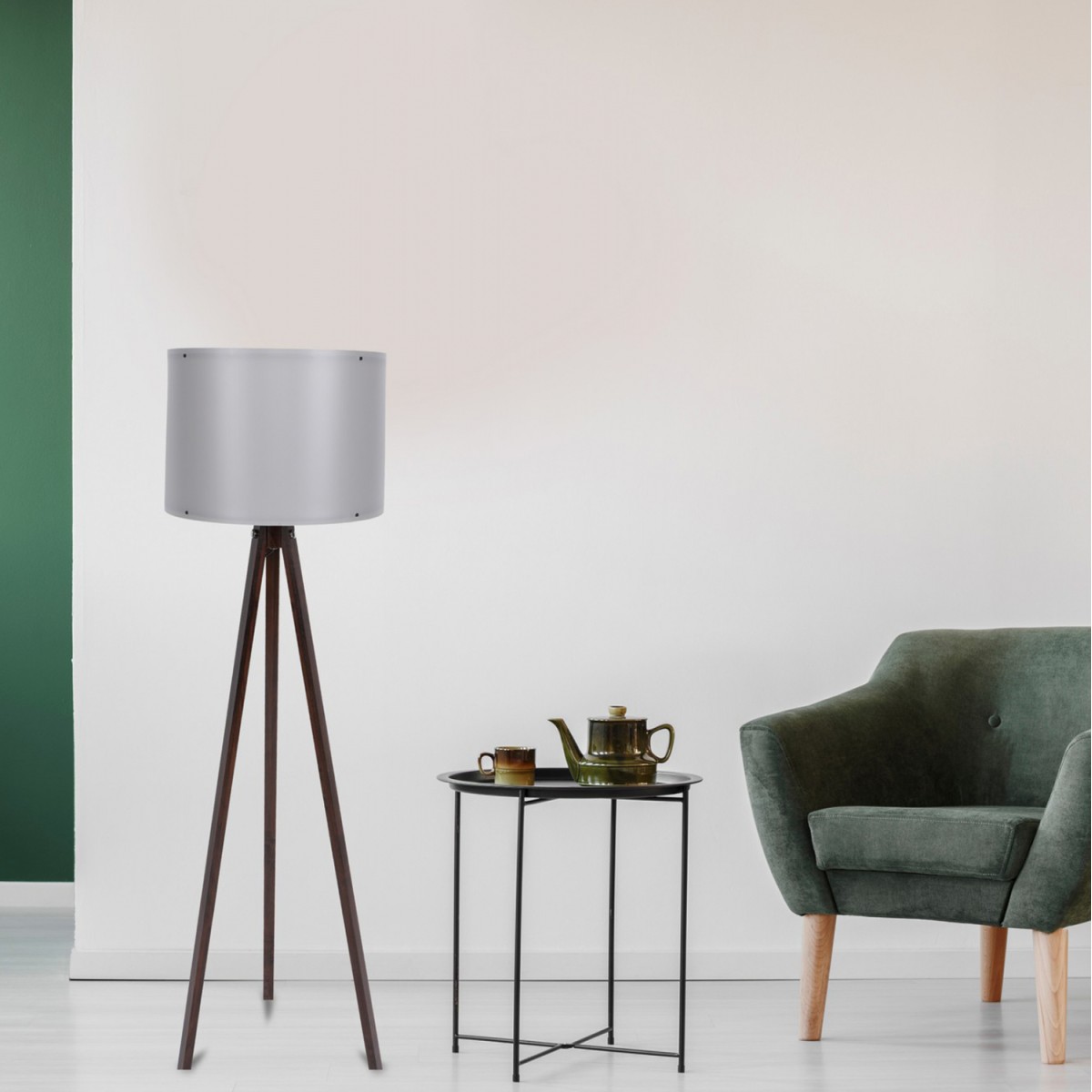 Μοντέρνο φωτιστικό δαπέδου, με ψηλά πόδια και ειδικό καπέλο που διαχέει αρμονικά το φως σε όποιον χώρο τοποθετηθεί. Όμορφο, απλό design με διακριτική διχρωμία. Σκελετός κατασκευασμένος από πόδια ενισχυμένου MDF, με μεγάλη αντοχή στην φθορά και το χρόνο, σε καρυδί απόχρωση και καπέλο από πολυπροπυλένιο σε χρώμα γκρί. Δέχεται 1 λαμπτήρα E27 έως 45 - 60 W ο οποίος δε συμπεριλαμβάνεται στη συσκευασία. Κατάλληλο για όλους τους χώρους του σπιτιού ή του εργασιακού χώρου. Διαστάσεις: Φ38x145 εκ. ...