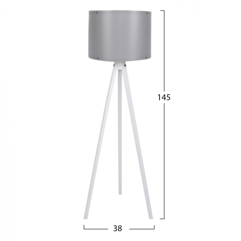 Μοντέρνο φωτιστικό δαπέδου, με ψηλά πόδια και ειδικό καπέλο που διαχέει αρμονικά το φως σε όποιον χώρο τοποθετηθεί. Όμορφο, απλό design με διακριτική διχρωμία. Σκελετός κατασκευασμένος από πόδια ενισχυμένου MDF, με μεγάλη αντοχή στην φθορά και το χρόνο, σε λευκή απόχρωση και καπέλο από πολυπροπυλένιο σε χρώμα γκρί. Δέχεται 1 λαμπτήρα E27 έως 45 - 60 W ο οποίος δε συμπεριλαμβάνεται στη συσκευασία. Κατάλληλο για όλους τους χώρους του σπιτιού ή του εργασιακού χώρου. Διαστάσεις: Φ38x145 εκ. Χ...