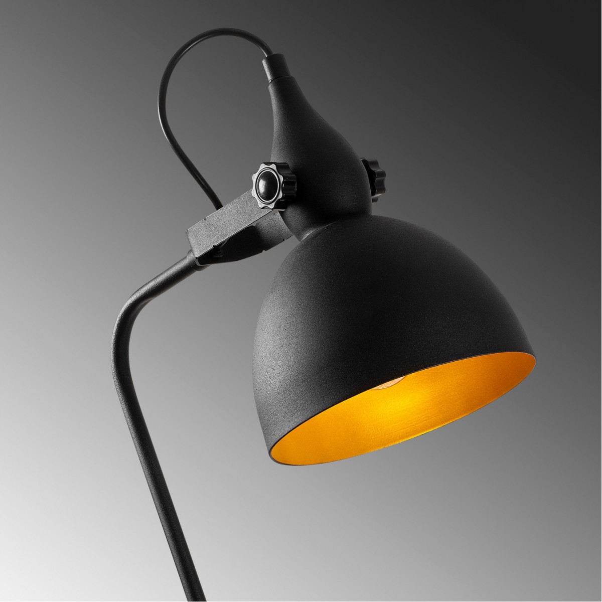 Μοντέρνο φωτιστικό δαπέδου, με όμορφο και απλό design σε διακριτική διχρωμία μαύρου με χρυσές λεπτομέρειες. Σκελετός κατασκευασμένος από μέταλλο, με μεγάλη αντοχή στην φθορά και το χρόνο, σε μαύρη απόχρωση και καπέλο σε μαύρο χρώμα εξωτερικά και χρυσό εσωτερικά. Δέχεται 1 λαμπτήρα E27 έως 60 W ο οποίος δε συμπεριλαμβάνεται στη συσκευασία. Κατάλληλο για όλους τους χώρους του σπιτιού ή του εργασιακού χώρου. Διαστάσεις: 35x30x183 εκ. Ύψος καπέλου: 25 εκ. Διάμετρος καπέλου: 17 εκ. Χρώμα σκελετού...