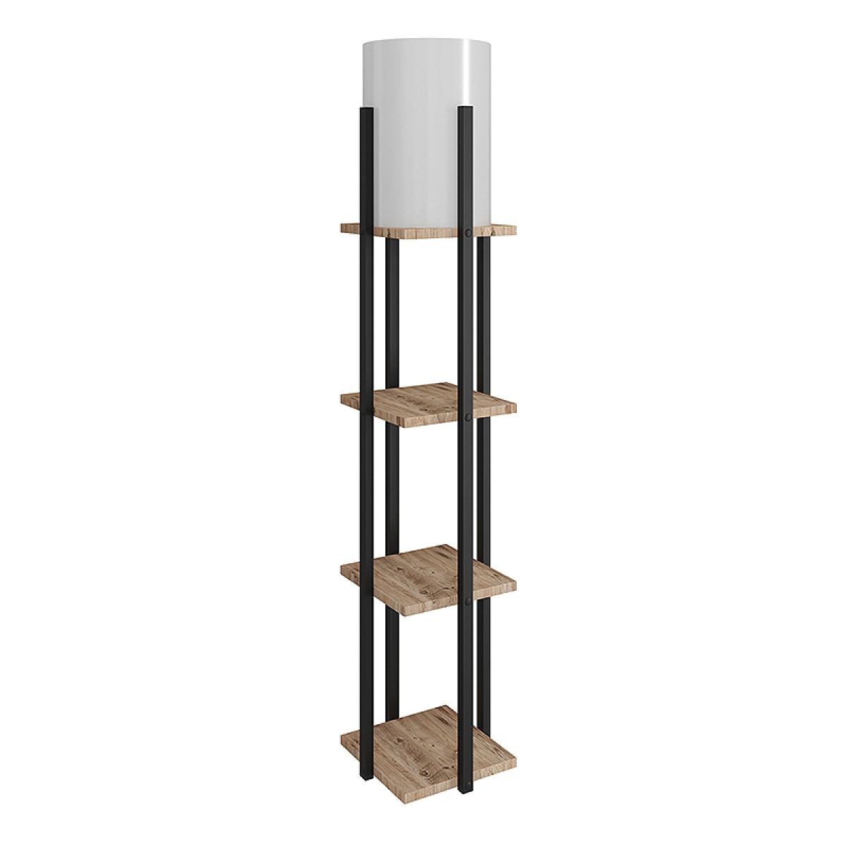 Φωτιστικό δαπέδου Nora Megapap MDF - υφασμάτινο χρώμα φυσικό - μαύρο 21x21x135εκ.
