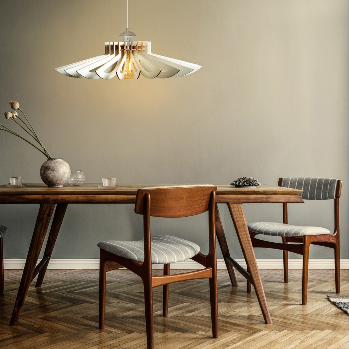 Αν επιθυμείτε να διακοσμήσετε το χώρο σας με ένα φωτιστικό που θα καλύψει όλες τις ανάγκες σας αυτό είναι η πιο σωστή επιλογή. Είναι κατασκευασμένο εξ ολοκλήρου από mdf σε λευκή απόχρωση. Tο ύψος του φωτιστικού προσαρμόζεται ανάλογα με τον τρόπο τοποθέτησης, έτσι ώστε να το διαμορφώσετε στο ύψος που σας ικανοποιεί. Ένα φωτιστικό κόσμημα που θα φέρει στον χώρο σας καλαίσθητο design και φωτισμό και θα σας αλλάξει το mood προς το καλύτερο. Ο σχεδιασμός και το σχήμα που διαθέτει δημιουργεί ένα απο...