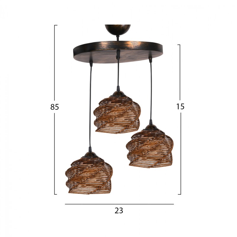 ΦΩΤΙΣΤΙΚΟ ΟΡΟΦΗΣ ΕΣΩΤΕΡΙΚΟΥ ΧΩΡΟΥ ΚΡΕΜΑΣΤΟ 3ΦΩΤΟ ΞΥΛΟ BAMBOO ΚΑΡΥΔΙ HM7479 23x15εκ.