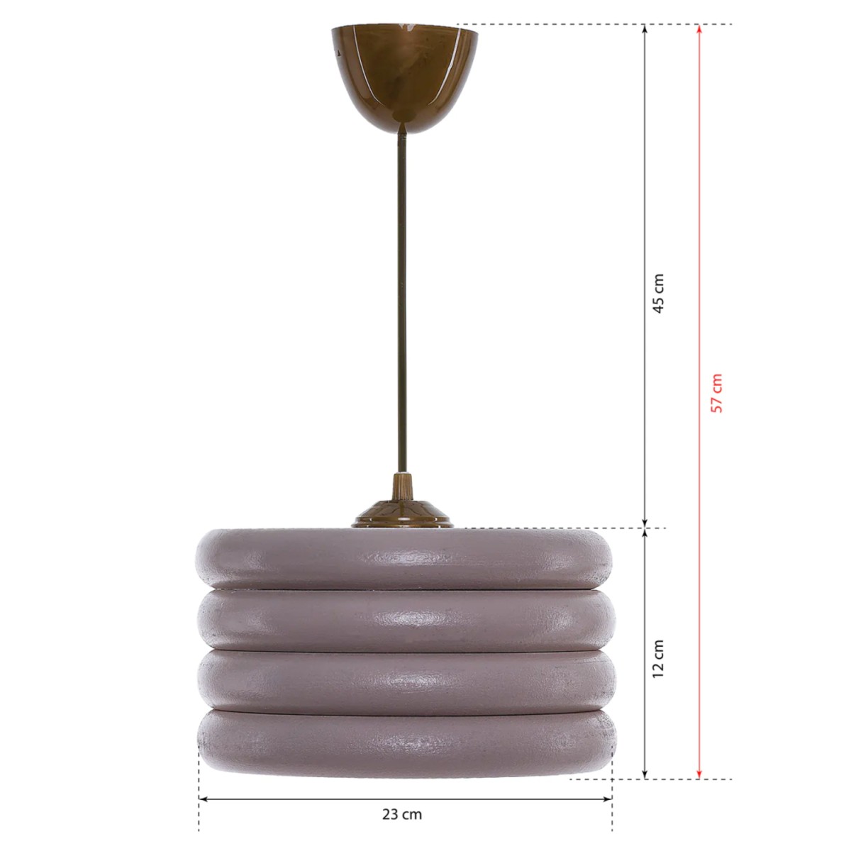 Hm7655.04- Kρεμαστό φωτιστικό---- Αφήστε το φως να απλωθεί στον χώρο με ένα πρωτότυπο και φινετσάτο μονόφωτο οροφής, ολοκληρώνοντας την διακόσμησή σας. Το ΗΜ7655.04 είναι ένα μονόφωτο φωτιστικό με το καπέλο να είναι ξύλινοι δακτύλιοι σε ΡΟΖ χρώμα και το καλώδιο κρεμάσματος με την βάση οροφής σε ΜΠΡΟΥΝΤΖΙΝΟ χρώμα. ΤΕΧΝΙΚΑ ΧΑΡΑΚΤΗΡΙΣΤΙΚΑ: Τύπος υποδοχής λαμπτήρα: Ε27 Normal Socket Διαστάσεις: 23Χ12Υ Συνολικό ύψος: 57 εκ. CE Certified ΥΛΙΚΟ ΚΑΤΑΣΚΕΥΗΣ: Το «καπέλο» είναι κατασκευασμένο από ξύλο πο...