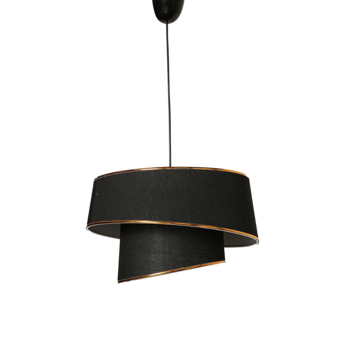 Φωτιστικό οροφής, σε απόχρωση μαύρο με χρυσό. Ένα φωτιστικό εξαιρετικής ποιότητας, με ξεχωριστό design,πρωτότυπο και κομψό στιλ, για την ανανέωση της διακόσμησης του προσωπικού σας χώρου. Κατασκευασμένο από μεταλλικό σκελετό και επενδυμένο από ύφασμα σε μαύρο απόχρωση με χρυσές λεπτομέρειες στο τελείωμα του καπέλου. Δέχεται έναν λαμπτήρα Ε27 μέχρι 60W, ο οποίος δεν συμπεριλαμβάνεται στη συσκευασία. Διαθέτει πιστοποίηση CE Διατάσεις: Φ32x70Υ εκ. Διαστάσεις καπέλου: Φ32x20Υ εκ. Ευρωπαϊκής κα...