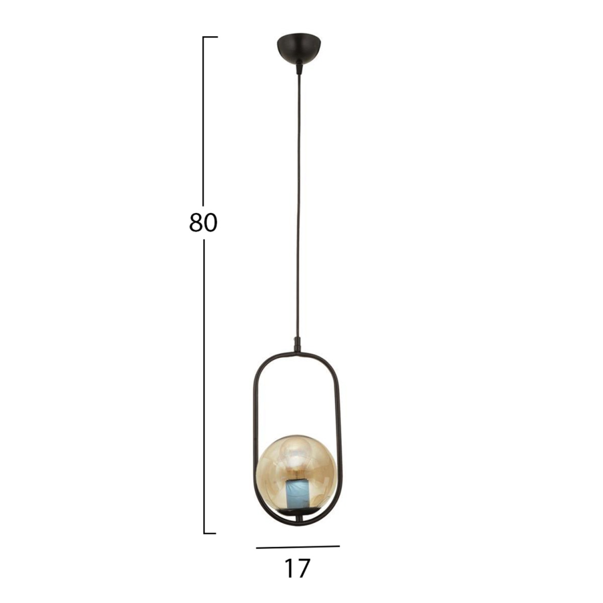 Φωτιστικό οροφής, σε μαύρη απόχρωση. Ένα φωτιστικό εξαιρετικής ποιότητας, με ξεχωριστό design,πρωτότυπο και κομψό στιλ, για την ανανέωση της διακόσμησης του προσωπικού σας χώρου. Κατασκευασμένο από μεταλλικό σκελετό, εξαιρετικής αντοχής. Δέχεται λαμπτήρα E27. Υπάρχει δυνατότητα χρήσης λαμπτήρων LED. Διαστάσεις: 17x80 εκ. Διαστάσεις γλόμπου: 15x15cm Ευρωπαϊκής κατασκευής και προέλευσης. Το προϊόν διατίθεται σε εργοστασιακή συσκευασία....