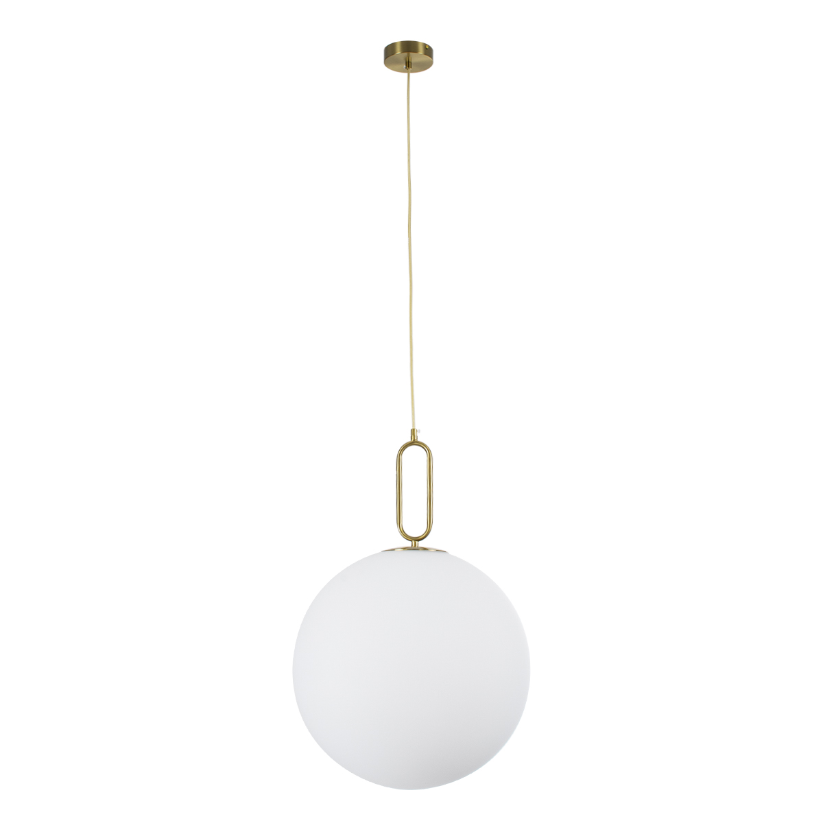 GloboStar® BELLISSIMO 61488 Μοντέρνο Κρεμαστό Φωτιστικό Μπάλα Μονόφωτο 1 x E27 IP20 Λευκό Γυαλί με Χρυσό Μέταλλο - Μ40 x Π40 x Υ62cm