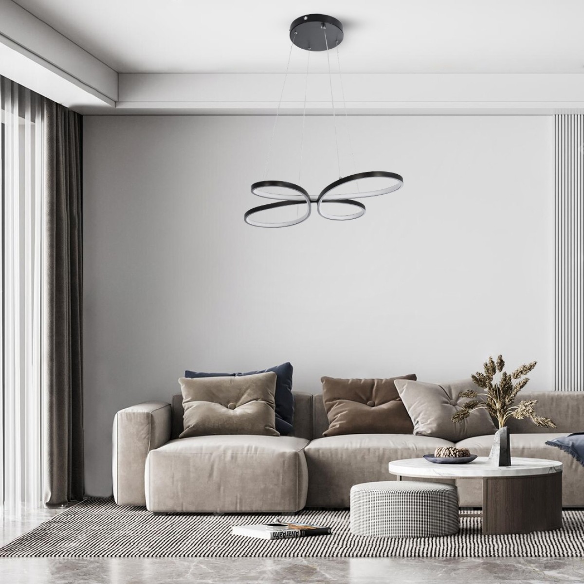 GloboStar® BUTTERFLY 61391 Κρεμαστό Φωτιστικό Οροφής Design LED CCT 75W 8400lm 300° AC 220-240V - Εναλλαγή Φωτισμού μέσω Τηλεχειριστηρίου All In One Ψυχρό 6000k+Φυσικό 4500k+Θερμό 2700k Dimmable Μ71 x Π52 x Υ4cm - Μαύρο - 3 Years Warranty