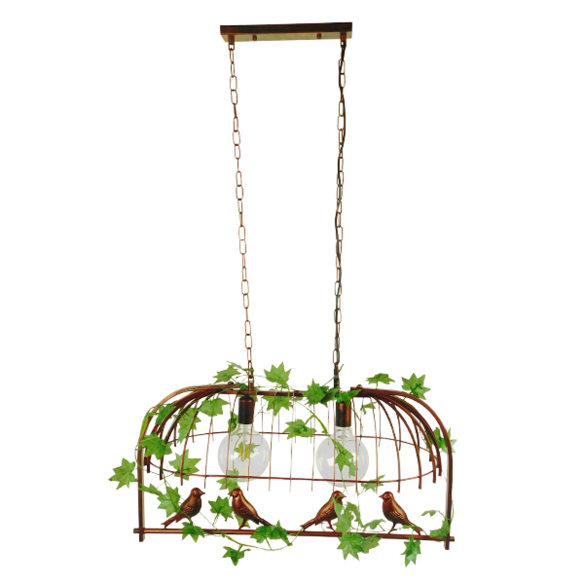 GloboStar® NEST 01645 Vintage Κρεμαστό Φωτιστικό Φιγούρα Δίφωτο 2 x E27 IP20 Χάλκινο Μέταλλο με Πράσινο Πλαστικό - Μ73.6 x Π37.5 x Y38.5cm