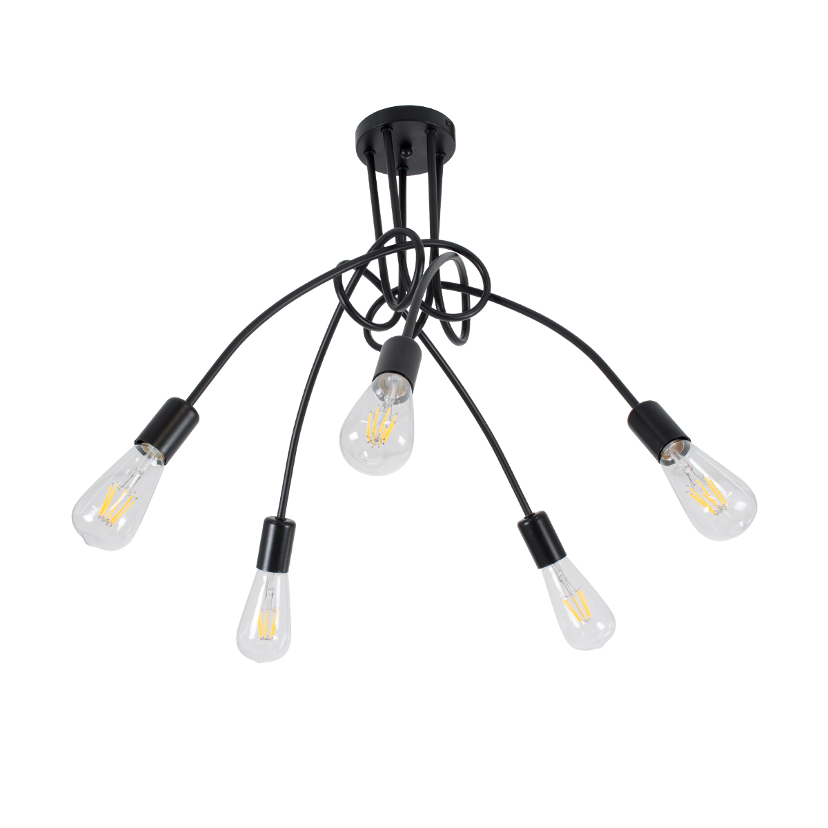 GloboStar® PAULELI 01127 Μοντέρνο Φωτιστικό Οροφής Πλέγμα Πολύφωτο 5 x E27 IP20 Μαύρο Μέταλλο - Μ76 x Π76 x Υ45cm