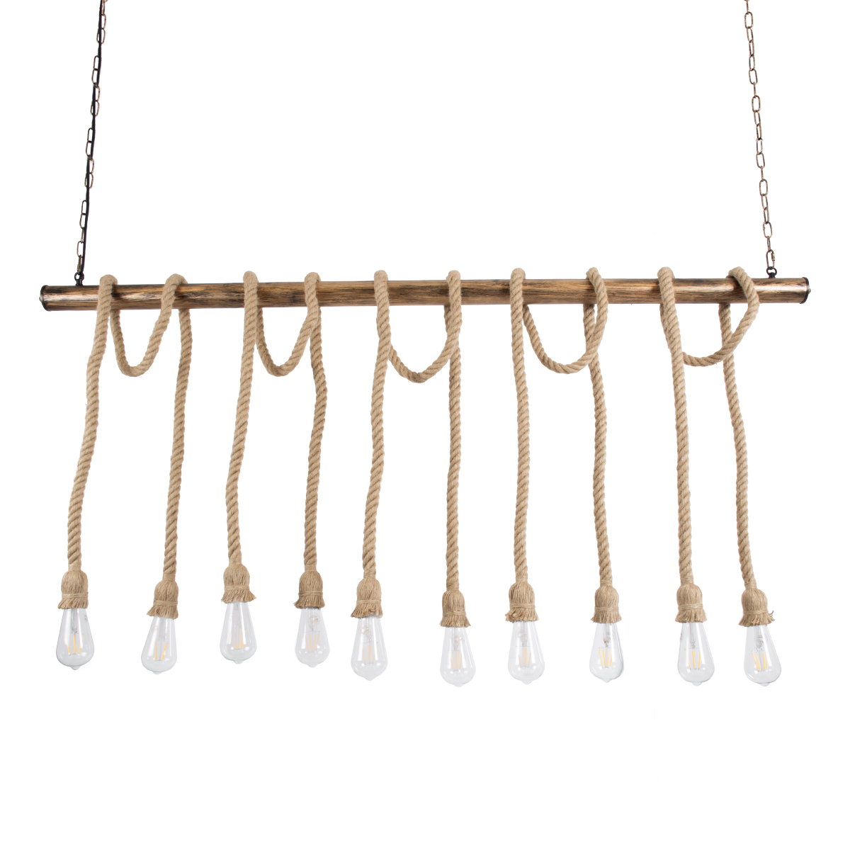 GloboStar® RAILROAD 01380 Vintage Κρεμαστό Φωτιστικό Ράγα Πολύφωτο 10 x E27 IP20 Χάλκινο Μέταλλο με Μπεζ Σχοινί - Μ150 x Π4 x Y62.5cm