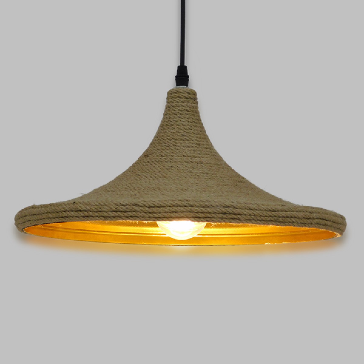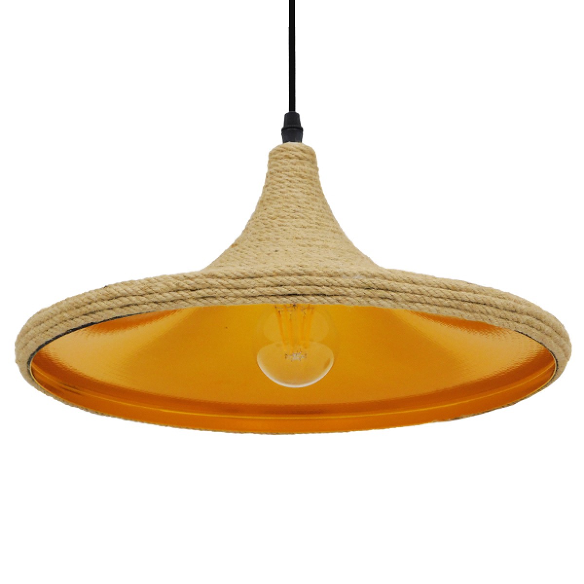 GloboStar® SHANGHAI ROPE 00917 Boho Κρεμαστό Φωτιστικό Καμπάνα Μονόφωτο 1 x E27 IP20 Μπεζ Σχοινί - Μ37 x Π37 x Υ20cm