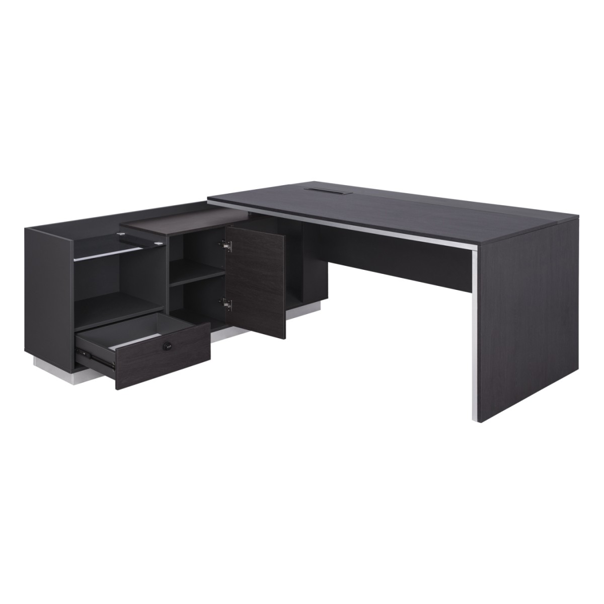 Επαγγελματικό γραφείο με αριστερή γωνία, κατασκευασμένο από μελαμίνη υψηλής ποιότητας, σε γκρι και βέγγε απόχρωση. Διαθέτει ντουλάπι με εσωτερικό ράφ..
