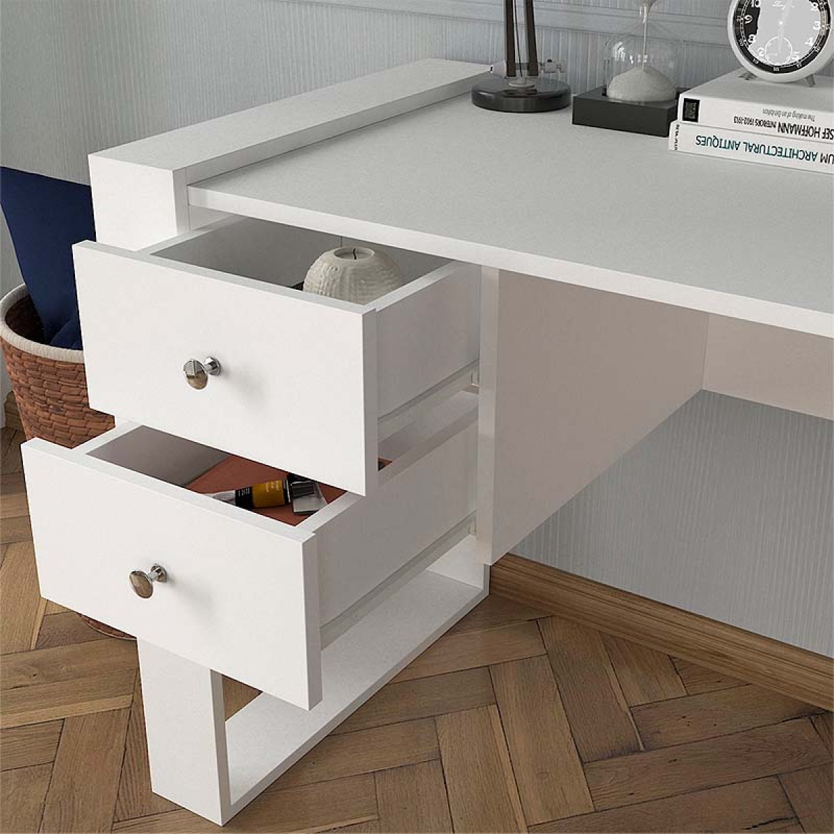 Γραφείο εργασίας Fernando Megapap από μελαμίνη χρώμα λευκό 158,4x60x72,2εκ.