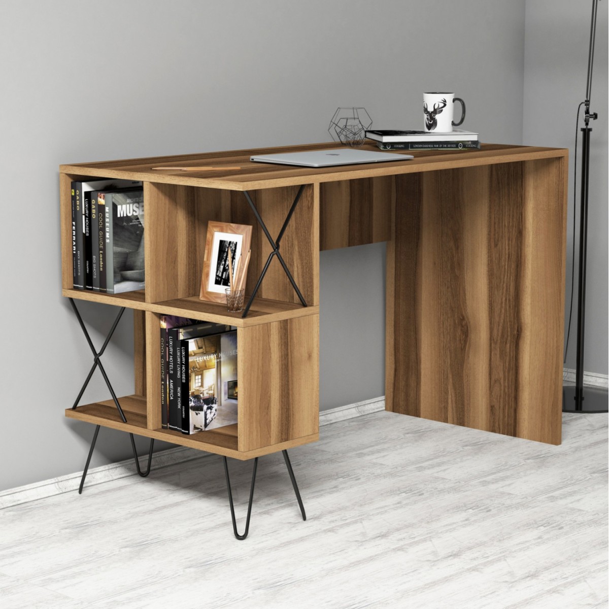 Το γραφείο ΗΜ9509.02 είναι μια ποιοτική πρόταση, κυρίως, για το γραφείο στο σπίτι. Το ΚΑΡΥΔΙ χρώμα κάνει το έπιπλο να κυριαρχεί στον χώρο. Η εξαιρετική και πρακτική κατασκευή εξασφαλίζει ότι θα περνάτε ευχάριστα όλες τις ώρες της εργασίας σας, που γνωρίζουμε ότι είναι πολλές! Άλλωστε, το γραφείο είναι το βασικότερο έπιπλο σε ένα δωμάτιο και θα πρέπει να το επιλέξετε προσεκτικά. Το ΗΜ9509.02 διαθέτει 4 ανοιχτούς χώρους τοποθέτησης αντικειμένων σε σχήμα κύβων στην αριστερή πλευρά και φυσικά μια ικανοποιητικού μεγέθους επιφάνεια. Το design είναι μοντέρνο με αποτέλεσμα τα πόδια της αριστερής πλευράς να είναι μεταλλικά σε μαύρο χρώμα ενώ η δεξιά πλευρά στηρίζεται με πάνελ μελαμίνης.