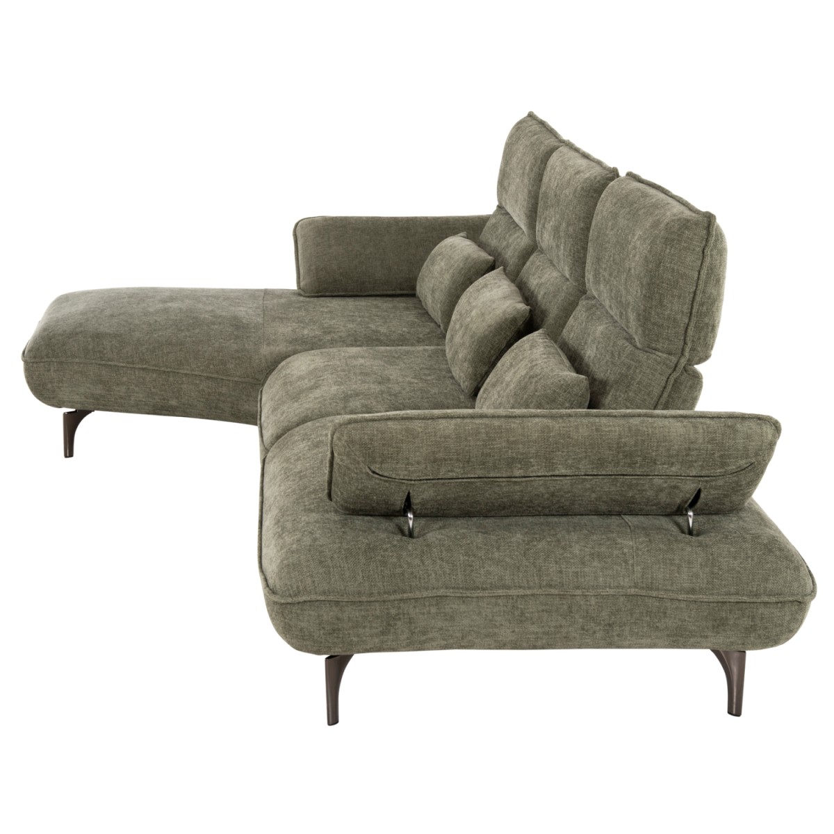 Σας παρουσιάζουμε τον CONVERT, έναν εκπληκτικό μεγάλο καναπέ-κρεβάτι σε διαμόρφωση ΑΡΙΣΤΕΡΗΣ γωνίας (όπως τον κοιτάς) επενδυμένο με ποιοτικό ύφασμα σε ΚΥΠΑΡΙΣΣΙ χρώμα. Το design του κλέβει τις εντυπώσεις και μαγνητίζει τα βλέμματα, χάρη στις ξεκάθαρες «γραμμές» του. Τα μπράτσα έχουν την μορφή μαξιλαριών αλλά είναι μέρος του καναπέ και μπορούν με μεταλλικό ΙΝΟΧ μηχανισμό να ανεβοκατεβαίνουν σε 3 επίπεδα. Η πλάτη αποτελείται από 3 μεγάλα τετράγωνα μαξιλάρια τα οποία, όπως και τα μπράτσα, μετακινούνται με υφασμάτινα χερούλια και μεταλλικό μηχανισμό προς τα πίσω αφήνοντας αρκετό χώρο για ένα μονό κρεβάτι. Το κομμάτι που σχηματίζει την γωνία είναι ίδιας αισθητικής και ενώνεται με τον κυρίως καναπέ με κατακόρυφους αναρτήρες πάνελ. Το κάθισμα διαθέτει γεμίσματα αφρού μεσαίας σκληρότητας σε συνδυασμό με ελατήρια pocket springs, προσφέροντας απαράμιλλη άνεση. Τέλος, την εικόνα συμπληρώνουν τα ψηλά σκούρα ασημί μεταλλικά πόδια, αλλά και τα 3 μικρά διακοσμητικά μαξιλαράκια.