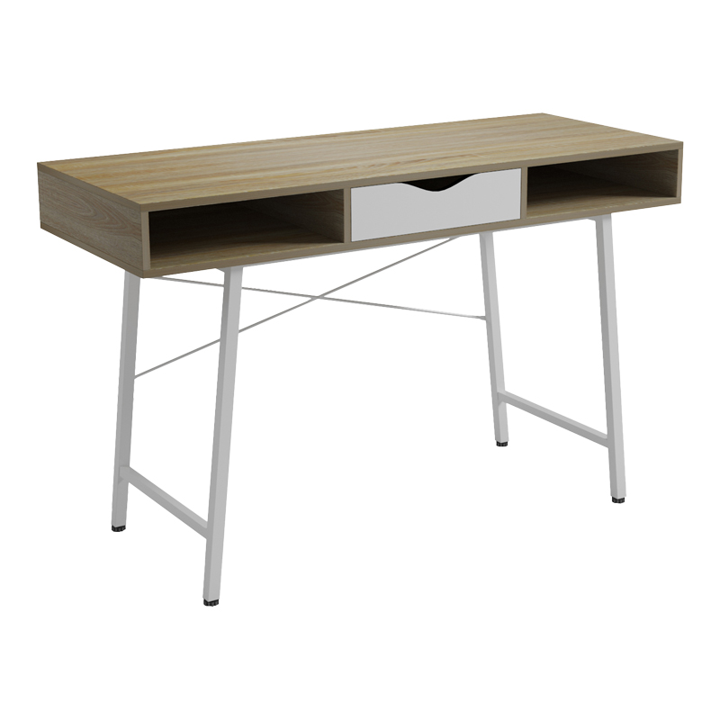 Γραφείο εργασίας Komo pakoworld σε sonoma-λευκή απόχρωση με λευκά μεταλλικά πόδια 120x48x76εκ