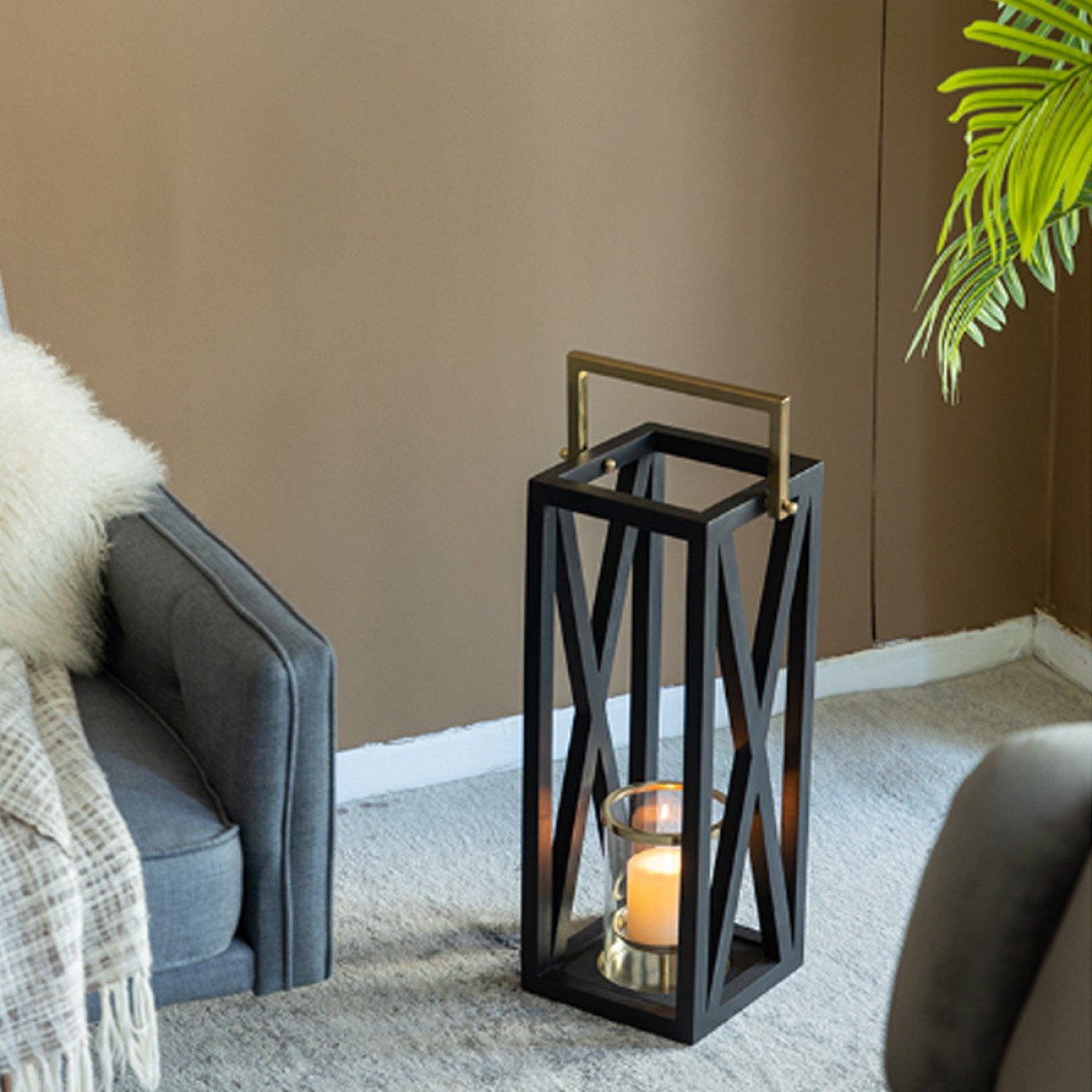 Artekko Lantern Φανάρι Διακοσμητικό Ξύλο/Μέταλλο Μαύρο/Χρυσό (26x21x64)cm