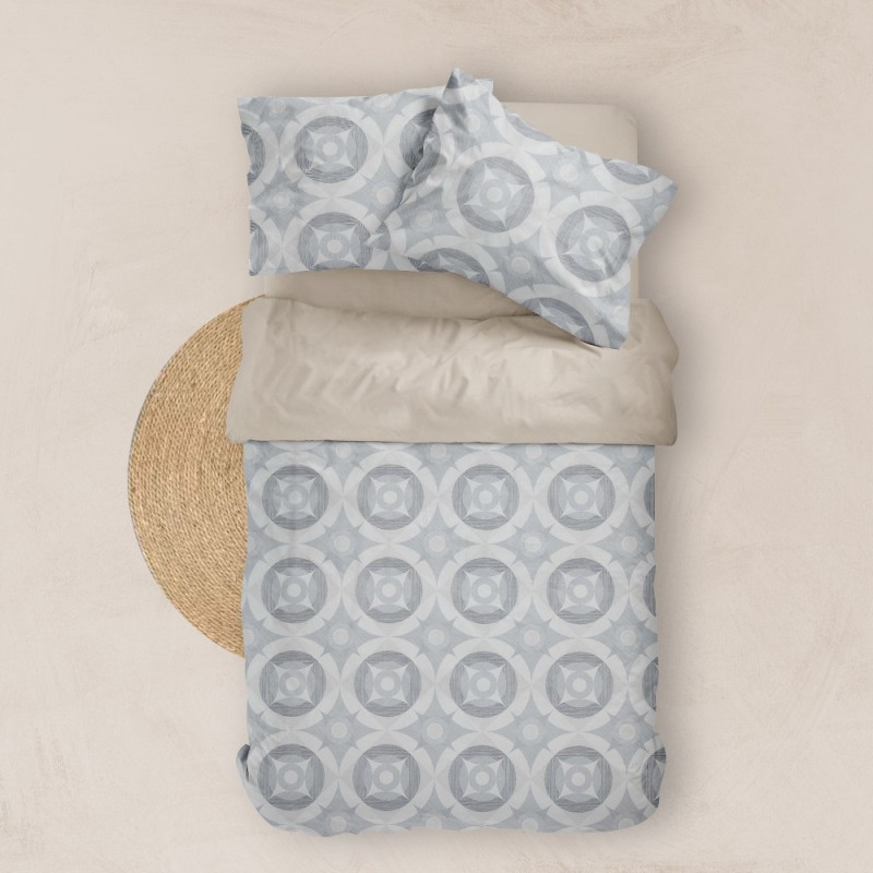 Σετ σεντόνια υπέρδιπλα με μαξιλαροθήκες από ύφασμα μερσεριζέ, 160 κλωστών, 100% βαμβακερό, συνδυασμός εμπριμέ γεωμετρικού μοτίβου και μονοχρωμίας, σε χρώμα γκρι.