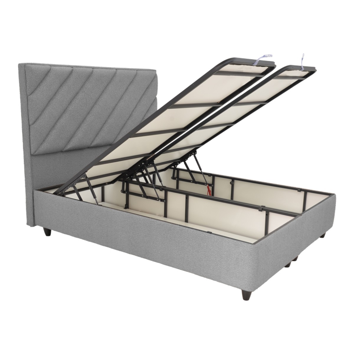 Κρεβάτι διπλό Tito pakoworld με αποθηκευτικό χώρο μπουκλέ ύφασμα σε ανοιχτή γκρι απόχρωση 160x200εκ