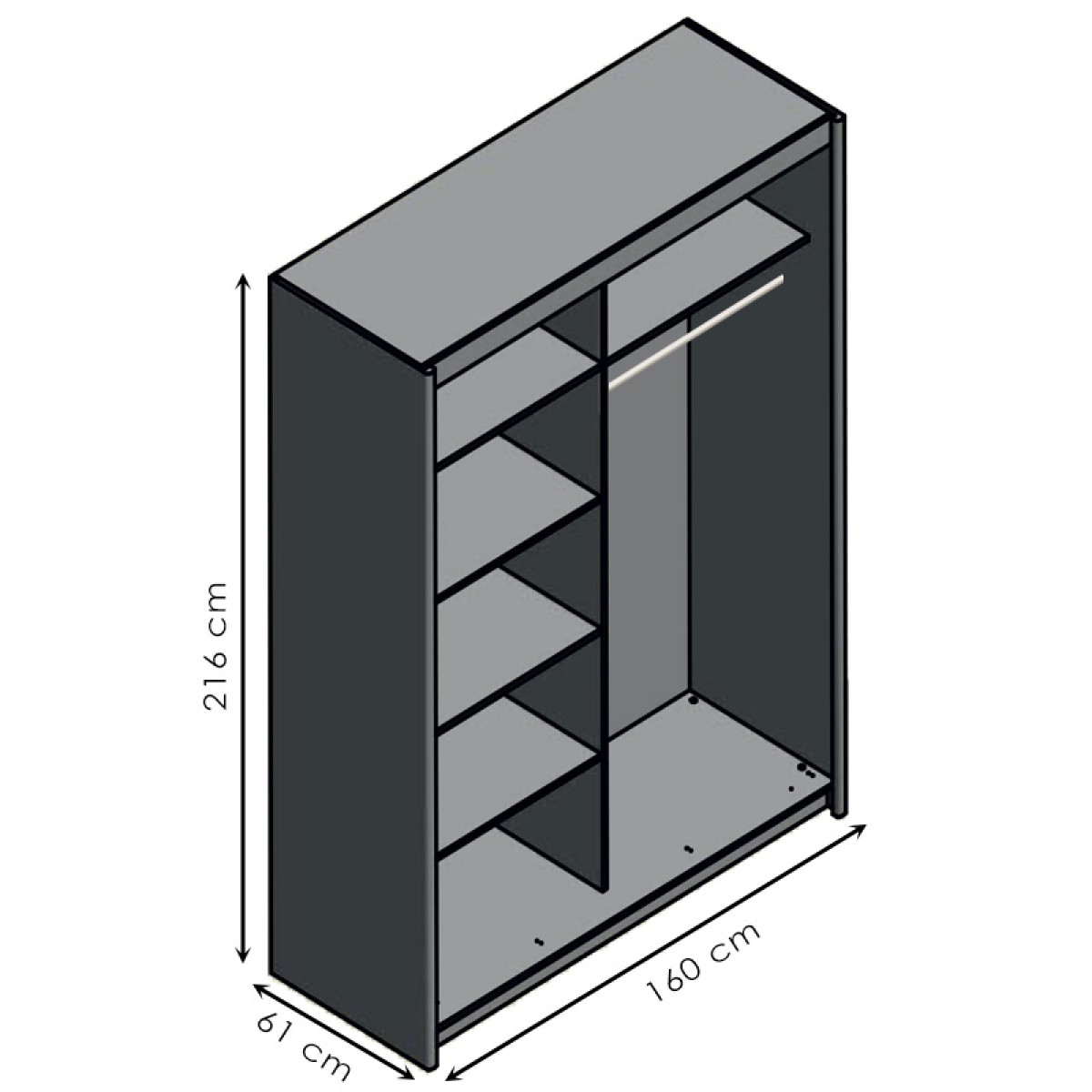 Ντουλάπα ρούχων Elodie pakoworld δίφυλλη καθρέπτης συρόμενη sonoma 160x61x216εκ