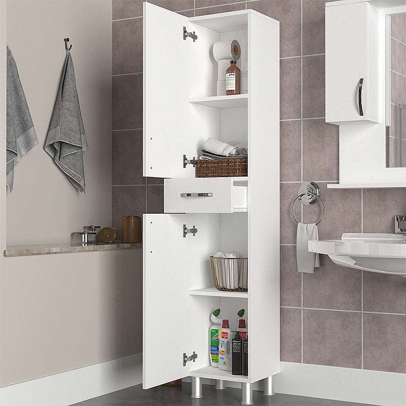 Ντουλάπι κουζίνας - μπάνιου Selina Megapap από μελαμίνη χρώμα λευκό 35x31x179εκ.