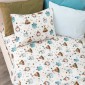 Σετ σεντόνια κούνιας με μαξιλαροθήκη από ύφασμα φανέλα, 100% βαμβακερό, εμπριμέ, χρώμα σιέλ σε λευκό φόντο, σχέδιο αρκουδάκια, ινδιάνοι.