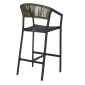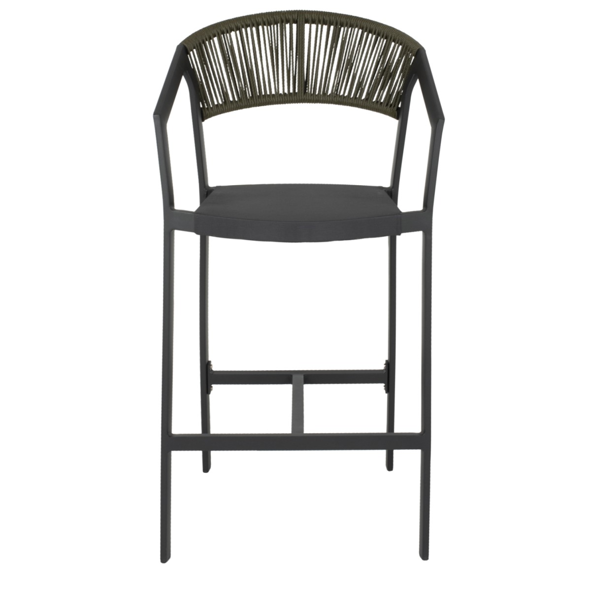 Η πλάτη του σκαμπό είναι επενδυμένη με πολυεστερικό RATTAN. Στα περισσότερα έπιπλα κήπου και γενικά σε έπιπλα για εξωτερικούς χώρους χρησιμοποιείται συνθετικό υλικό από PVC, δηλαδή τεχνητές ίνες υψηλής ποιότητας. Αυτό δίνει στην κατασκευή εξαιρετική αντοχή και ανθεκτικότητα σε ακραίες συνθήκες ζέστης ή κρύου.