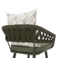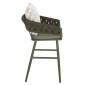 Το σκαμπό μπαρ αλουμινίου CAMDEN σε DARK OLIVE χρώμα δεν έχει ξεχωριστά μπράτσα αλλά η πλάτη είναι ημικυκλική αγκαλιάζοντας το σώμα. Πρόκειται για ένα ξεχωριστό σκαμπό με χαμηλή πλάτη από συνθετικό φαρδύ πολυεστερικό σχοινί (terylene). Το ιδιαίτερο χαρακτηριστικό αυτού του σκαμπό είναι ότι διαθέτει αναπαυτικά μαξιλάρια (με φερμουάρ) τόσο στο κάθισμα σε DARK OLIVE χρώμα, όσο και στην πλάτη σε λευκό χρώμα με PRINT σχέδιο.