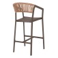 Η πλάτη του σκαμπό είναι επενδυμένη με πολυεστερικό RATTAN. Στα περισσότερα έπιπλα κήπου και γενικά σε έπιπλα για εξωτερικούς χώρους χρησιμοποιείται συνθετικό υλικό από PVC, δηλαδή τεχνητές ίνες υψηλής ποιότητας. Αυτό δίνει στην κατασκευή εξαιρετική αντοχή και ανθεκτικότητα σε ακραίες συνθήκες ζέστης ή κρύου.