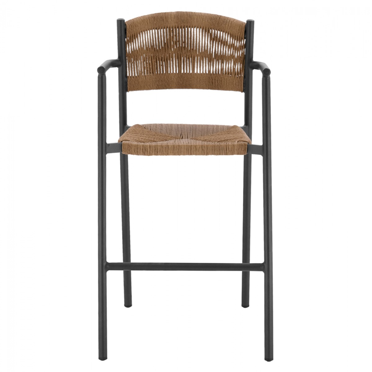 Μοντέρνο σκαμπό bar, κατασκευασμένo από σκελετό αλουμινίου σε γκρι απόχρωση, επενδυμένο με σχοινί στην πλάτη και στο κάθισμα σε μπεζ απόχρωση. Ένα σκαμπό άριστης ποιότητας και κατασκευής με χειροποίητη πλέξη στο κάθισμά του. Ιδανικό για χώρους εστίασης αλλά και για το σπίτι σας, θα χαρίσει ένα μοντέρνο και ιδιαίτερο αποτέλεσμα στον χώρο σας. Διαστάσεις: 55,5x58x107 εκ. Διαστάσεις καθίσματος: 43,5x43 εκ. Ύψος καθίσματος: 69,5 εκ. Διαστάσεις πλάτης: 46,5x39 εκ. Διαστάσεις μπράτσων: 36x25 εκ. Ύ...