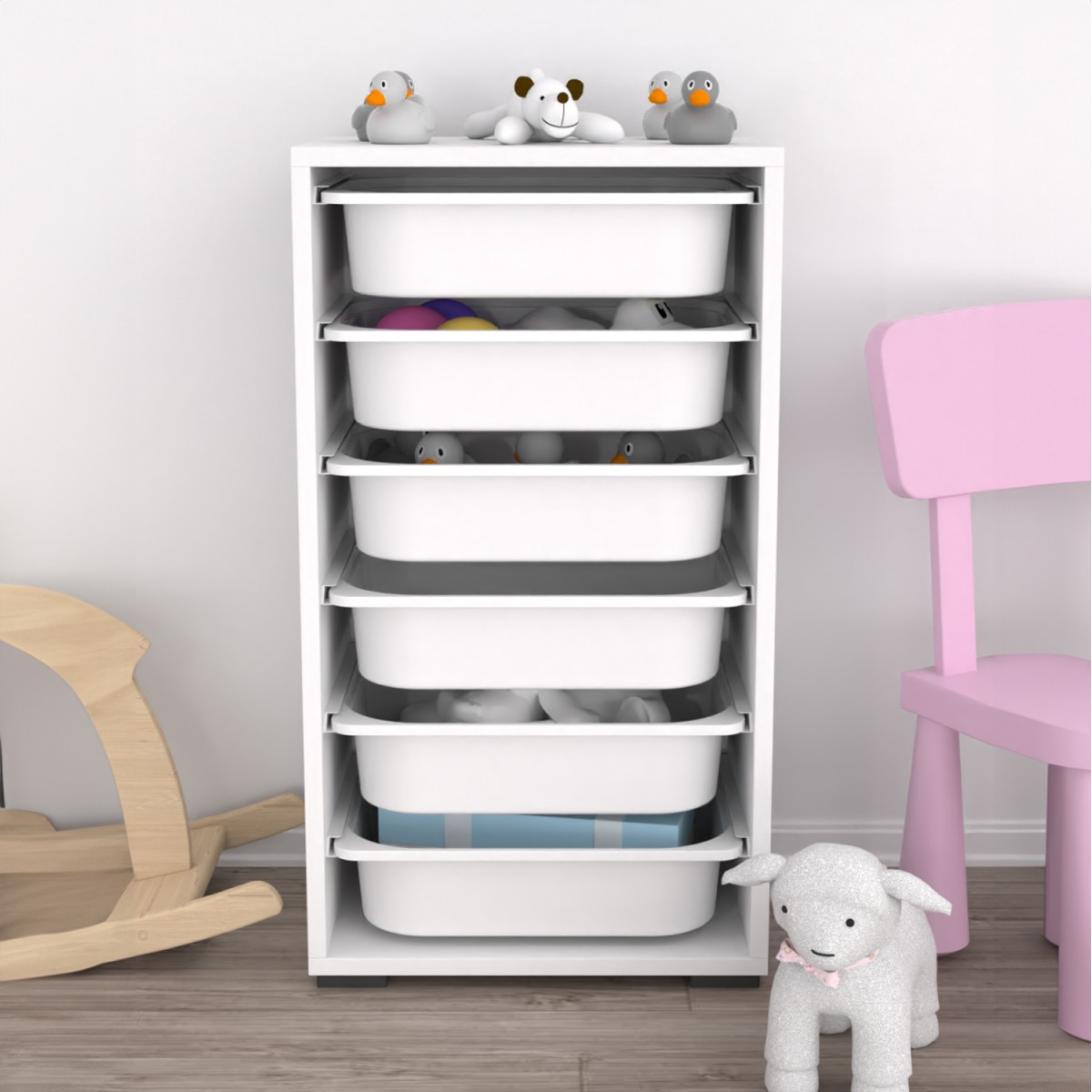 Η SANI είναι μια συρταριέρα με πλαίσιο από μελαμίνη σε χρώμα ΛΕΥΚΟ, με 6 ΛΕΥΚΑ ρηχά συρτάρια από πολυαιθυλένιο (πλαστικό). Ιδανική συρταριέρα για την καλύτερη οργάνωση του παιδικού δωματίου.
