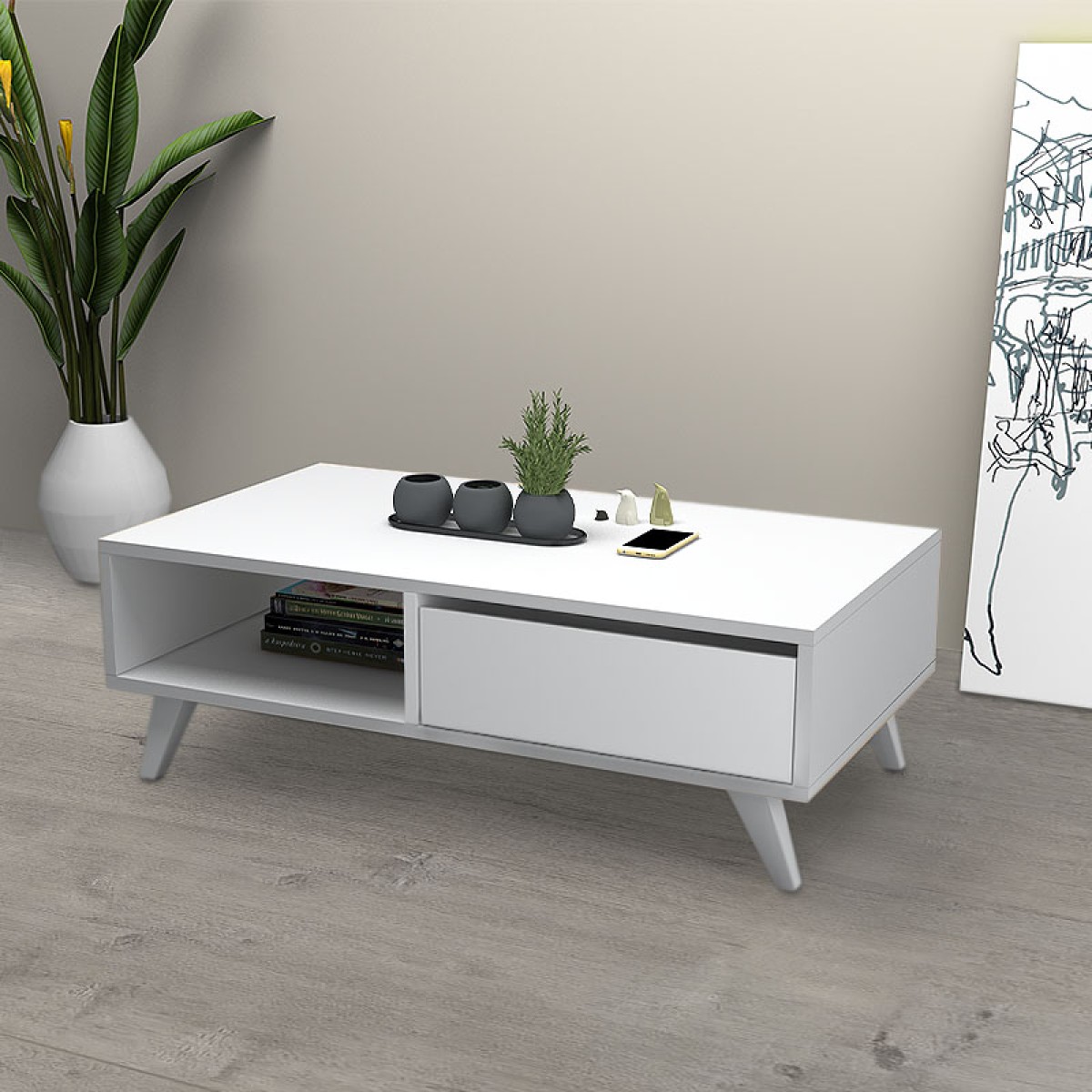 Τραπεζάκι σαλονιού Aster Megapap από μελαμίνη χρώμα λευκό 120x56x40εκ.