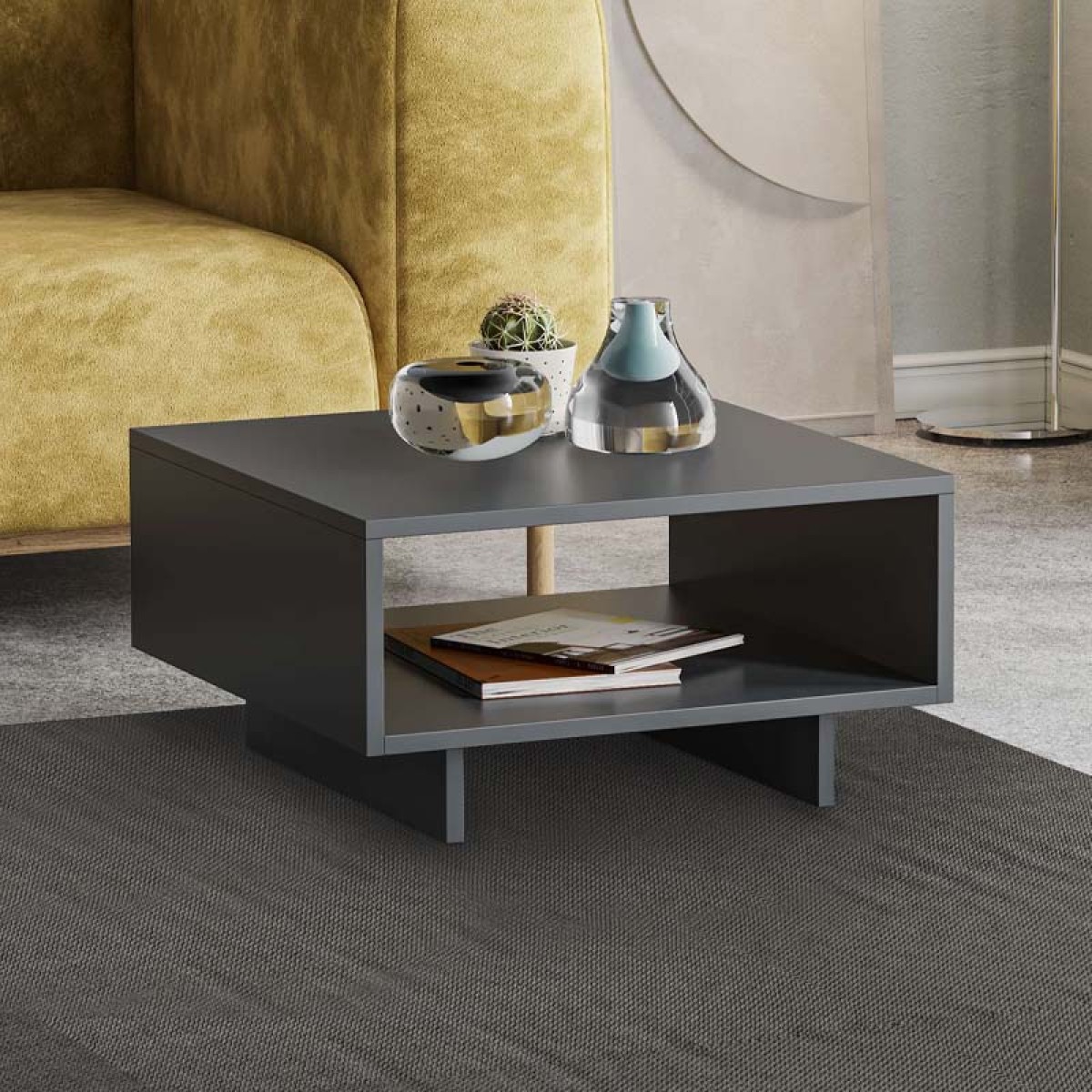 Τραπεζάκι σαλονιού Hola Megapap μελαμίνης χρώμα ανθρακί 60x60x32εκ.